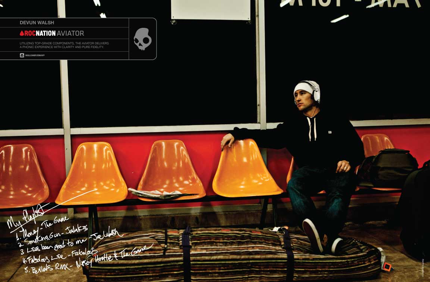 Beyond watching his angel grow up lovingly, Dev has some other things to look forward to in the short-term. First, he’s off to New Hampshire to rip rally cars per the personal invite of the O.G. of DC, Ken Block himself along with Jeremy McGrath, Josh Kalis, Torah Bright, and notable other action-sports megastars. And heading into next year, this super sweetSkullcandy ad that we’re going to see across the board in awesome snowboard print rags. Yeah, Dev!